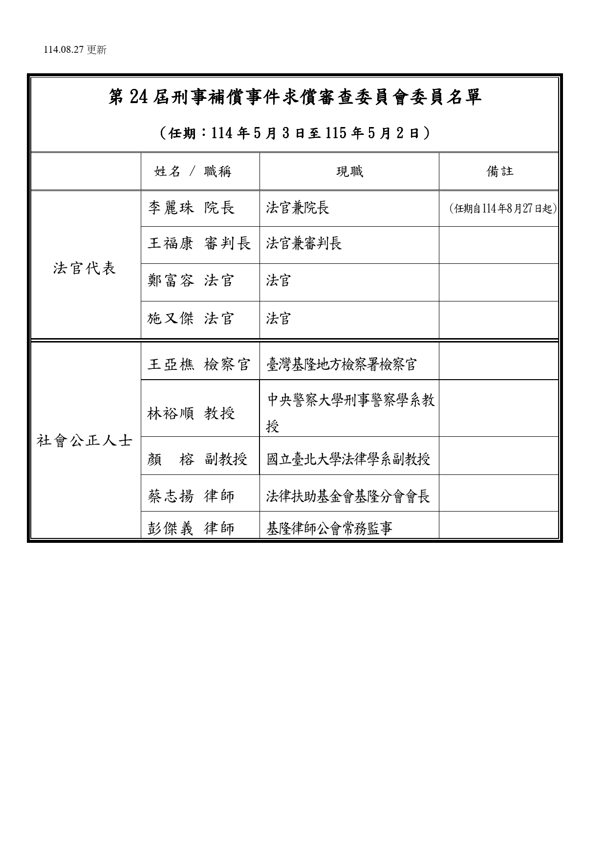 第24屆刑事補償事件求償審查委員會委員名單_1